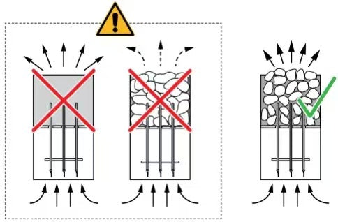 It’s important to arrange the stones properly: they should cover the heating coils without blocking the airflow at the top. To check if the airflow is normal, place your hand near the bottom of the stove after arranging the stones and turning it on. If you feel air being drawn in, the stove is ventilating correctly.